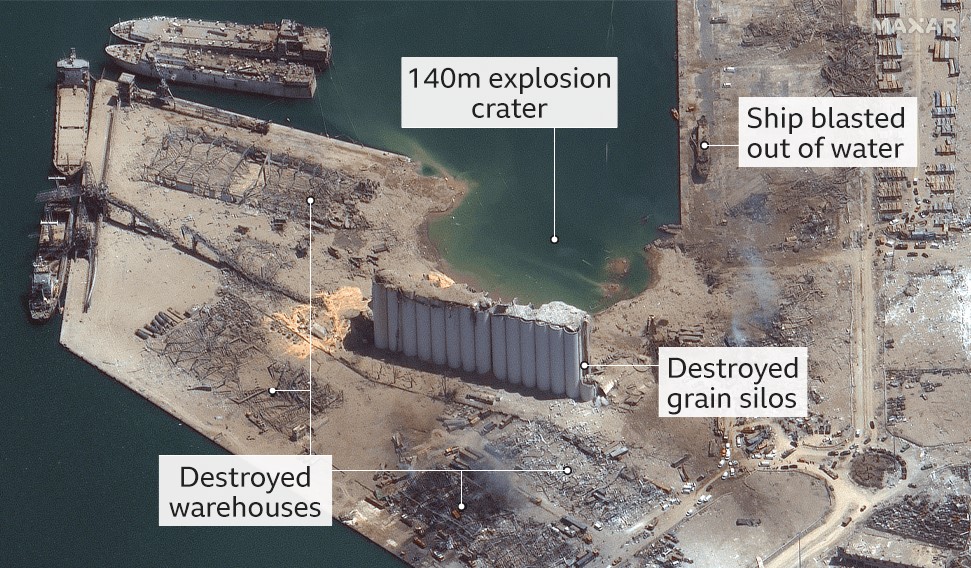 The disaster was preceded by a large fire at the Port of Beirut, on the city’s northern Mediterranean coast. In videos posted on social media white smoke could be seen billowing from Warehouse 12, next to the port’s huge grain silos.